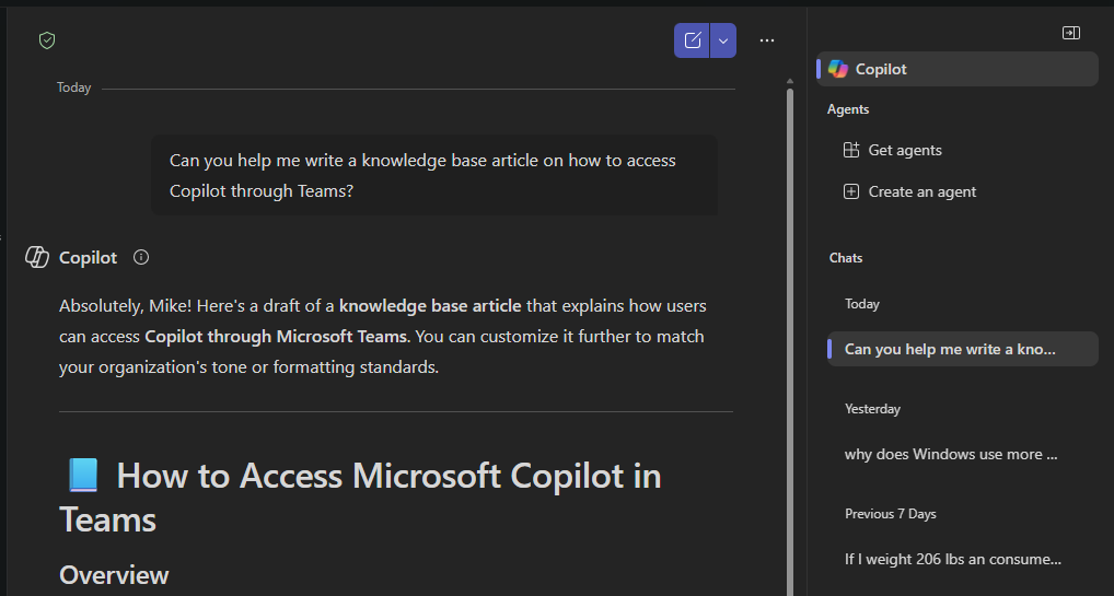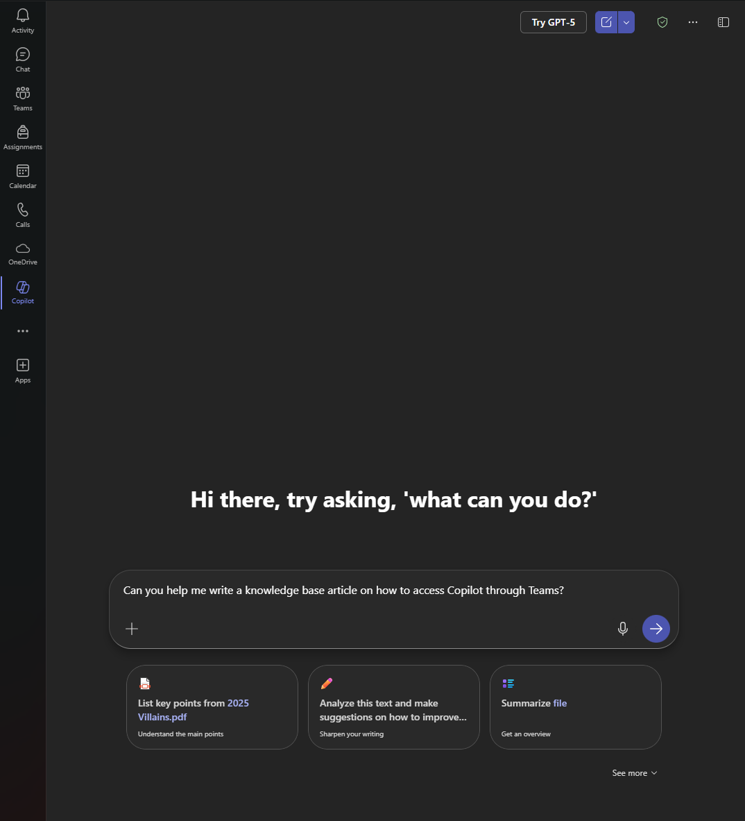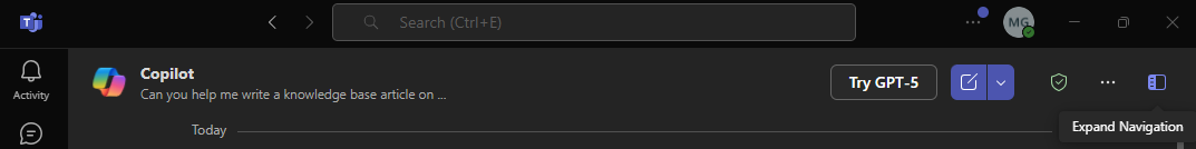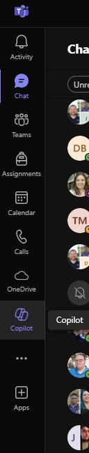 Using the Microsoft Teams app Copilot will be an option on the left pane: